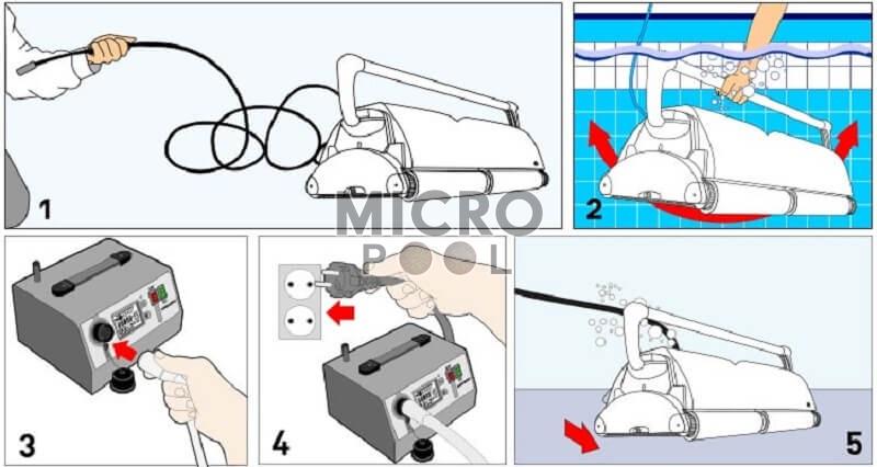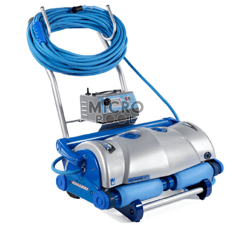 Robotul are un giroscop incorporat care ii permite sa acopere toata suprafata piscinei,ocolind fiecare obstacol. Include un o sursa programabila pentru diferite programe de curatare, o telecomanda, un cablu de 45 m si un carut din otel inoxidabil.