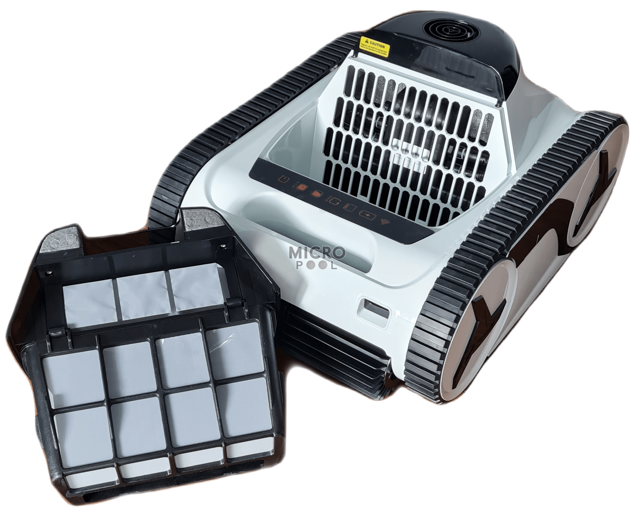 Vedere cu partea superioara a robotului, cu capacul de vizitare cu acces facil catre filtrul robotului.
