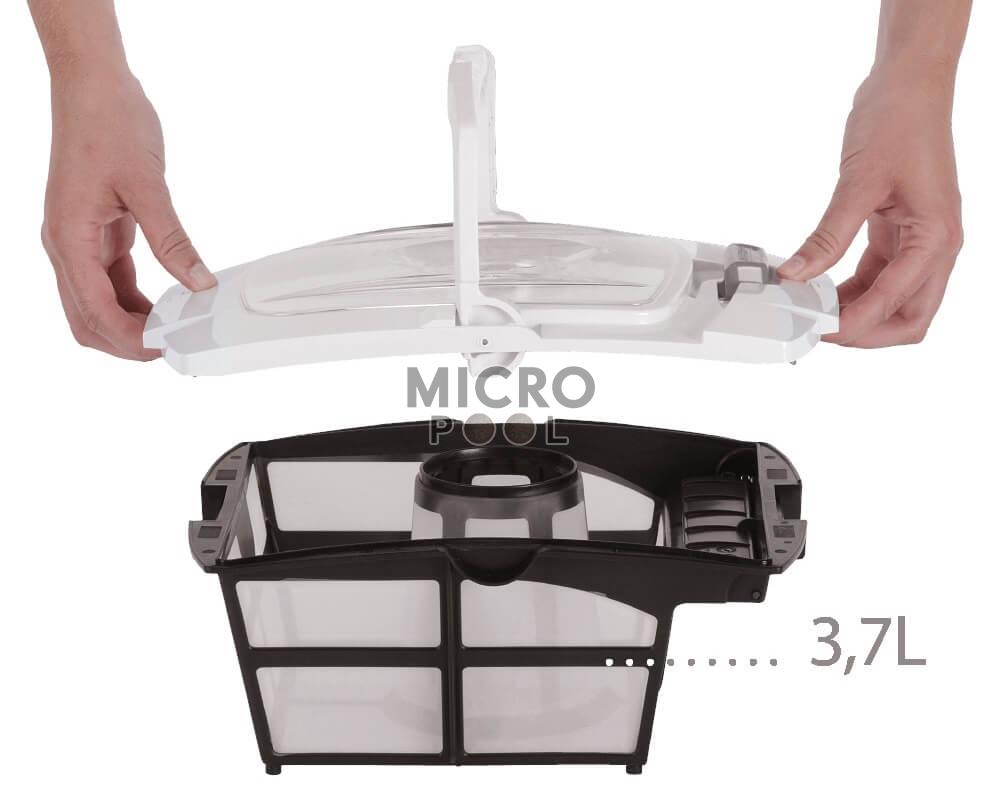 Saturarea filtrului se poate observa prin capacul transparent, cos filtru rigid de 3,7 litri, accesibil de sus, cu o finete de 100 microni.